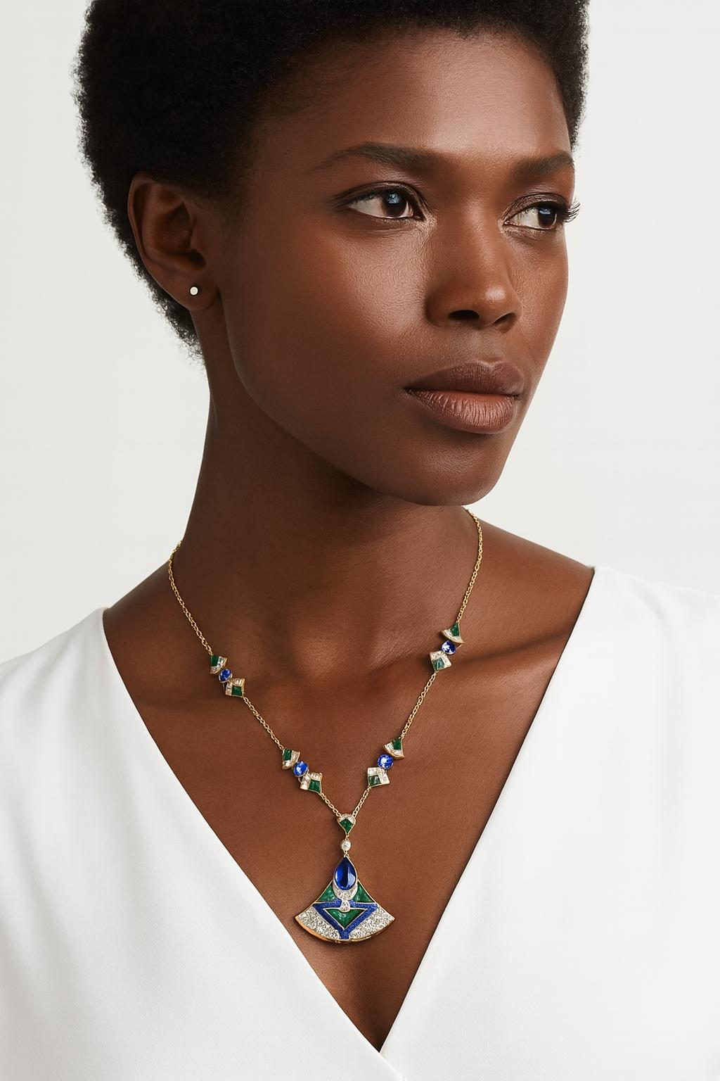 2.35ct Lab Grown Diamond & Enamel Necklace – 23.56gm 14kt Gold