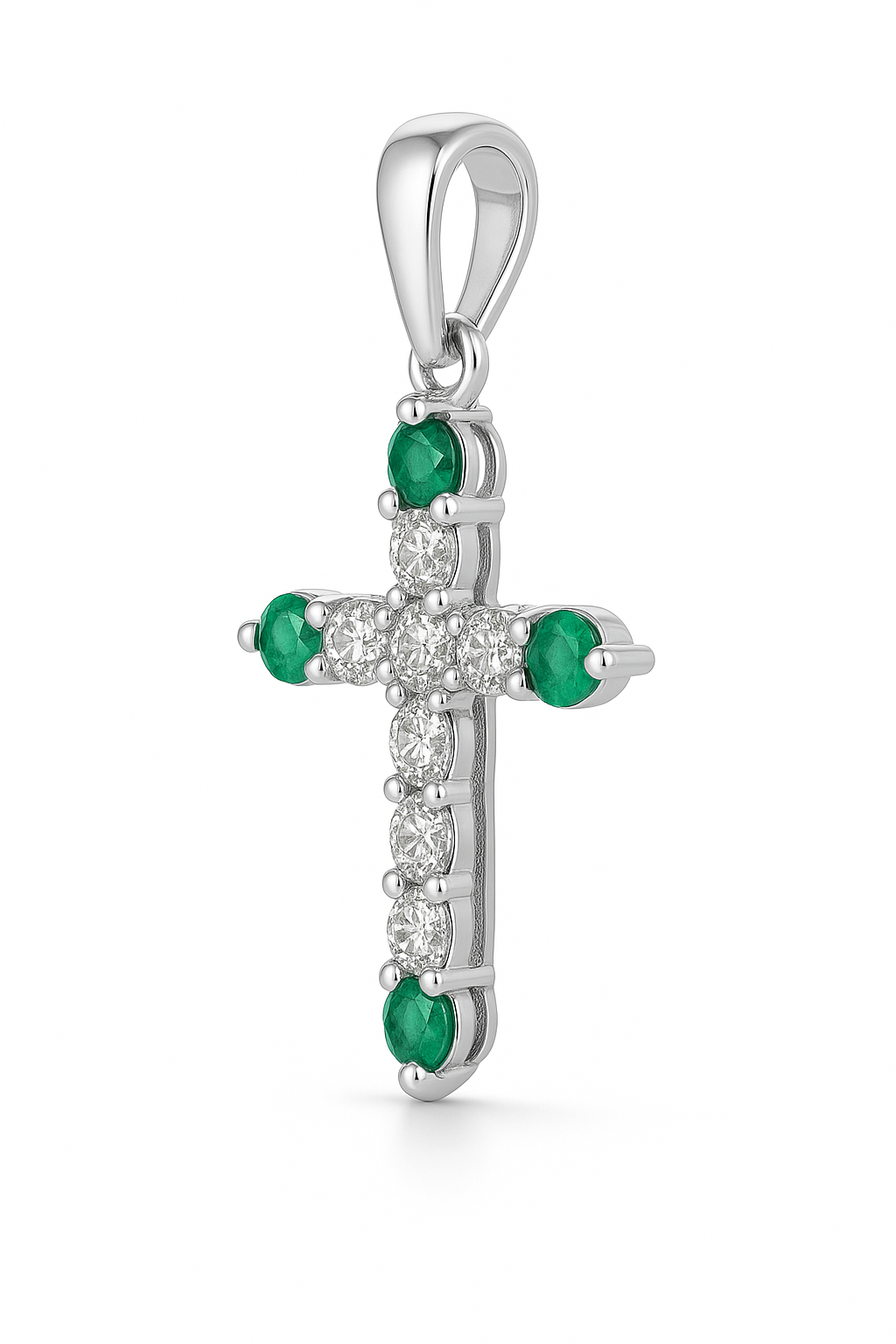 0.20ctw Natural Emerald and Diamond Cross Pendant
