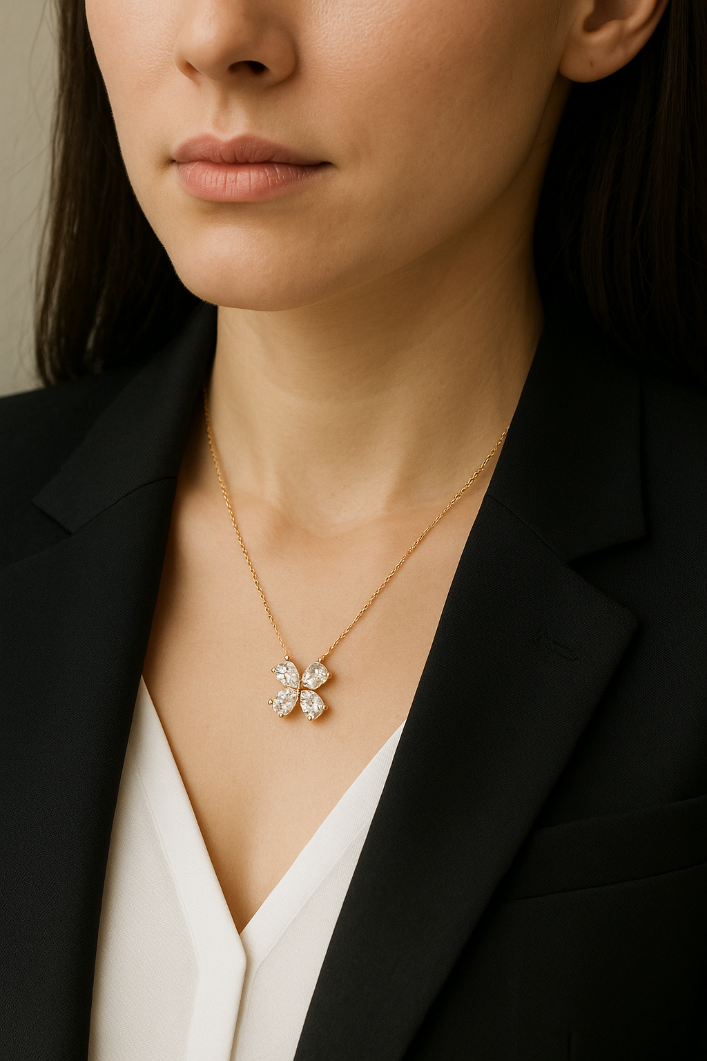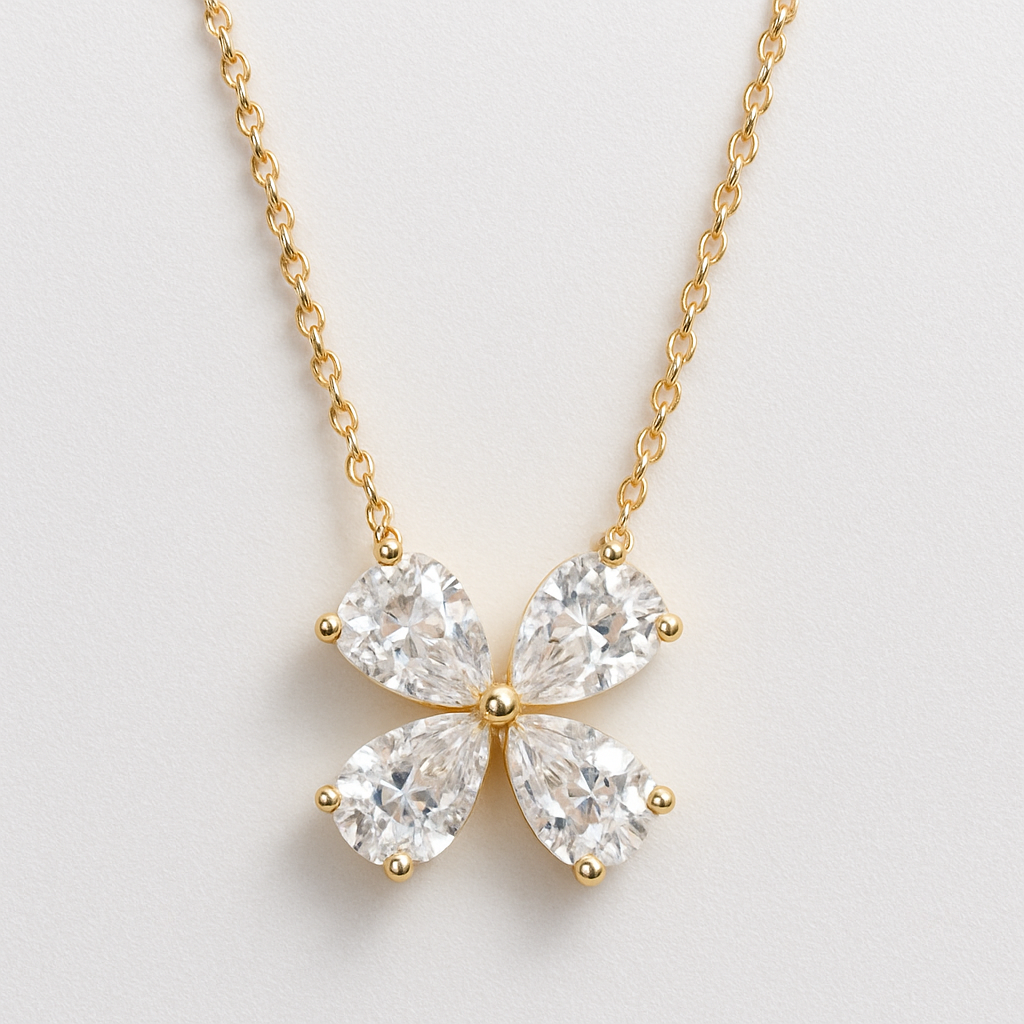 0.92ctw Clover Shape 4 Pear Shape Lab Grown Diamond Necklace