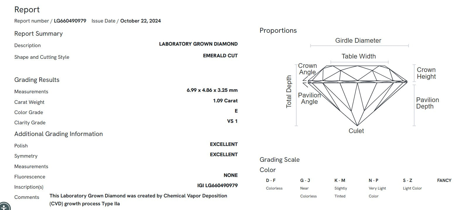 Elevate your everyday elegance with these stunning 2.17 carat total weight emerald cut lab grown diamond studs. Expertly crafted and IGI certified, each diamond showcases exceptional brilliance with: