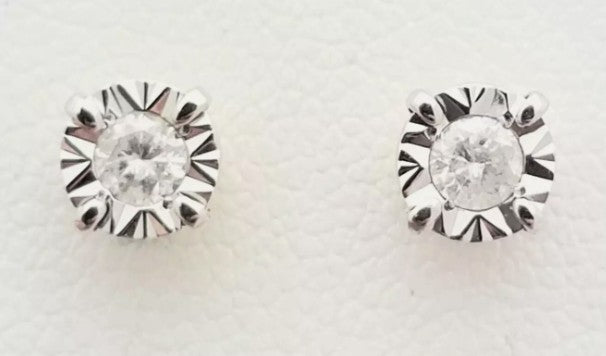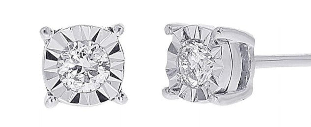 10K Diamond Illusion Set Stud Earrings-White Gold-Earth Mined-0.10ctw