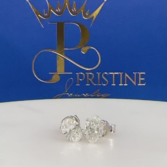 Add timeless elegance to your collection with these stunning oval lab grown diamond stud earrings, crafted in 14K white gold. Featuring a total weight of 2.09 carats, each diamond is beautifully cut to maximize brilliance and elongate the look on the ear.