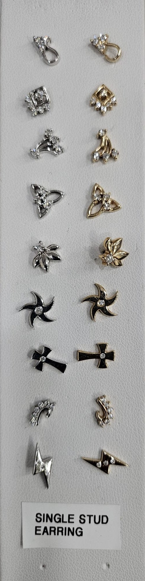 14kt Single Piece Diamond Stud Earrings in White/Yellow Gold