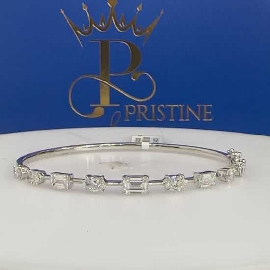 ✨ 14Kt White Gold Emerald & Oval Diamond Bangle – A True Statement of Elegance ✨