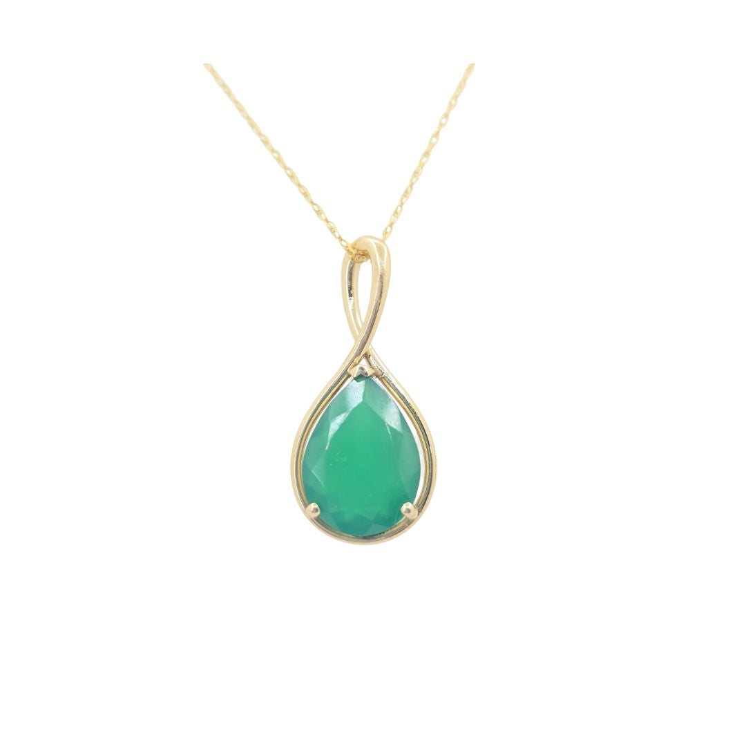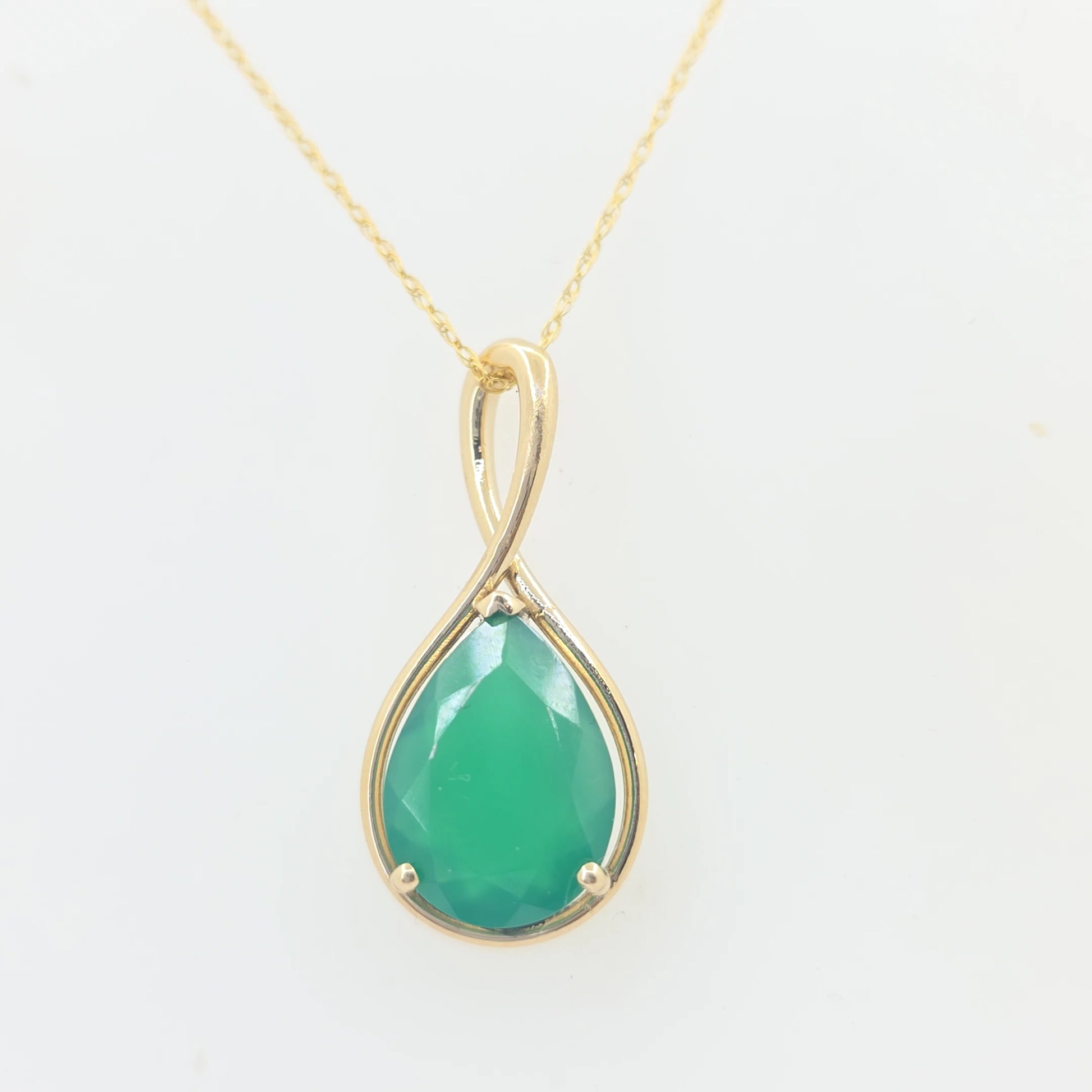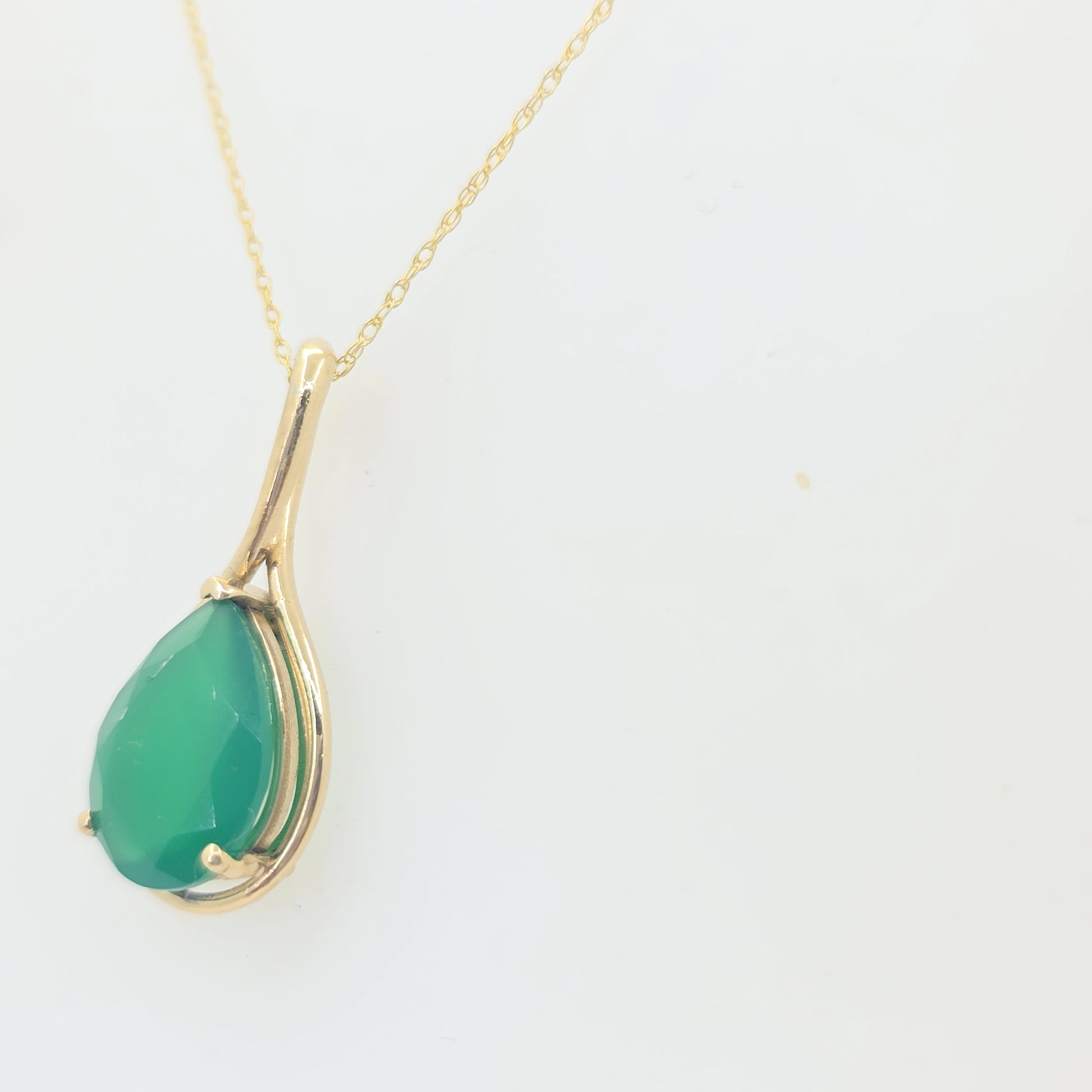 14KT Yellow Gold Pear Shape Green Onyx Pendant