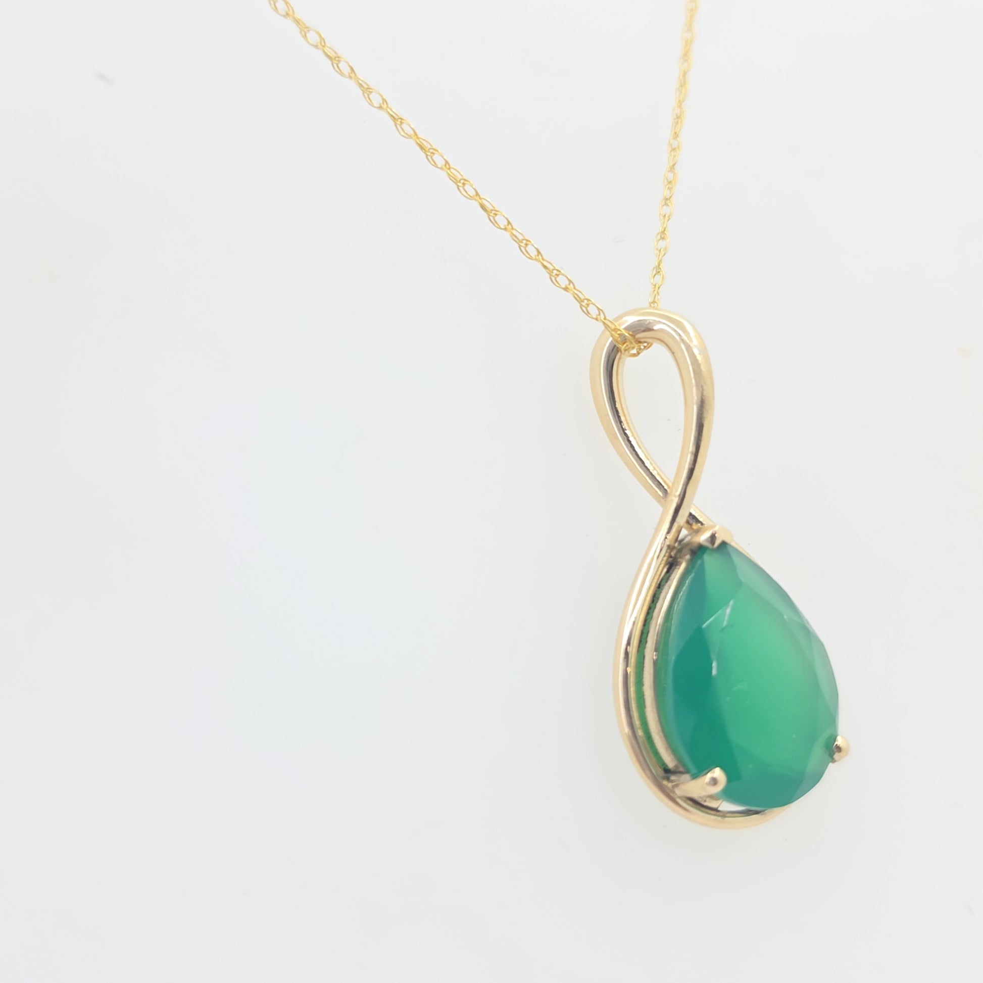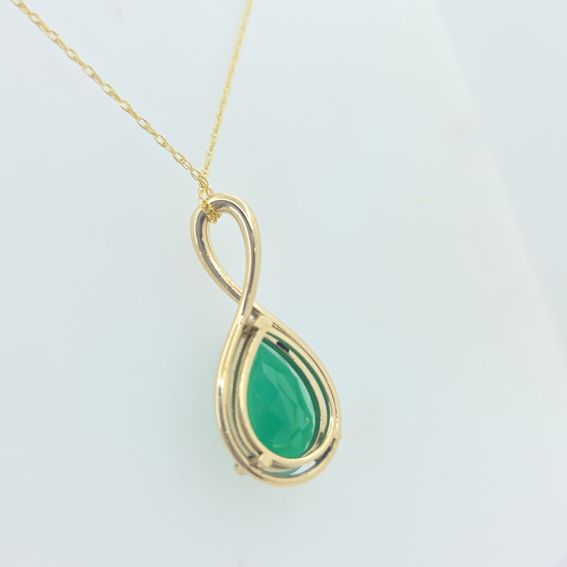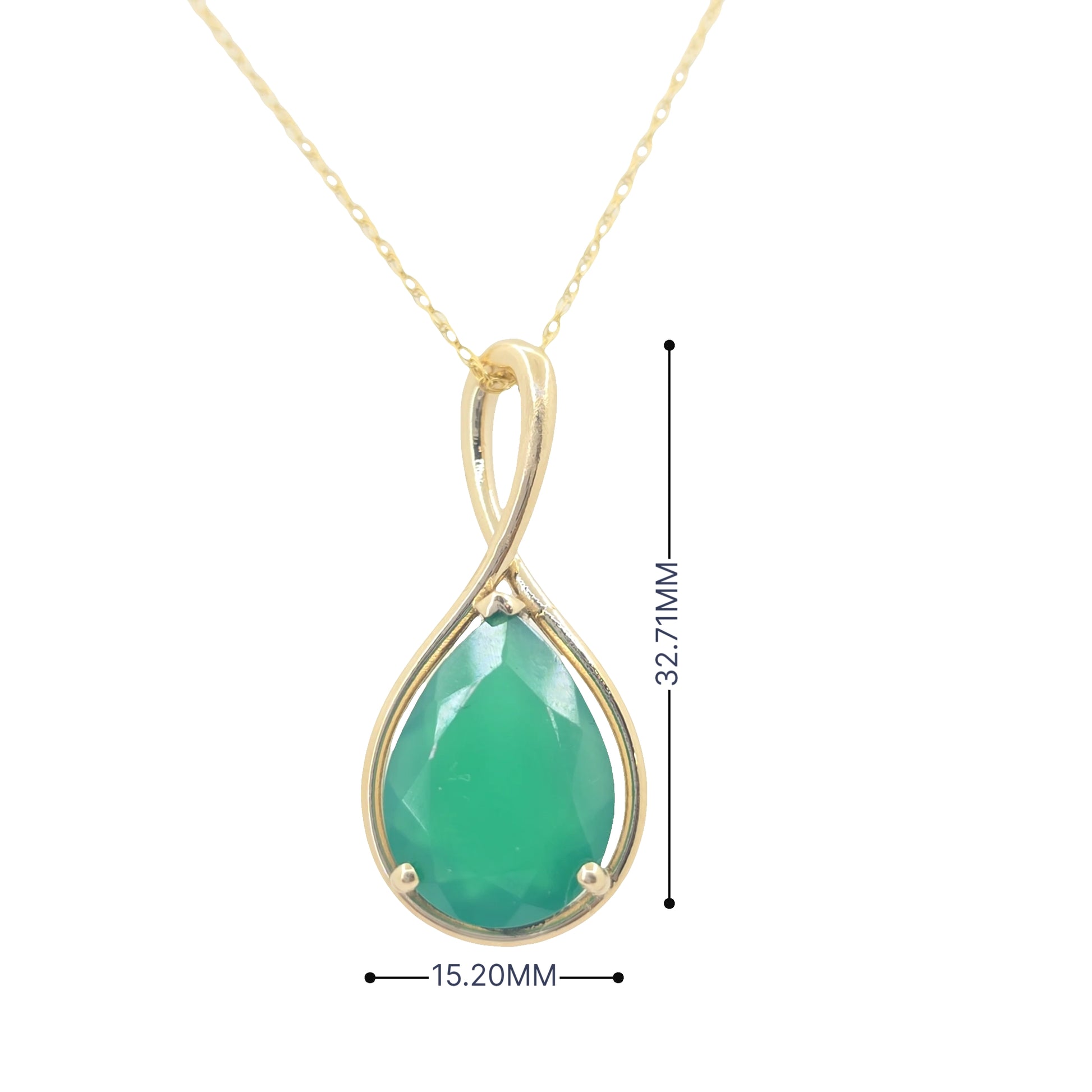 A statement piece crafted in rich 14KT Yellow Gold, featuring a striking pear-shaped Green Onyx gemstone. The pendant weighs 4.45 grams and showcases an impressive approx. 6.00 carat total weight (ctw) Green Onyx, making it both bold and elegant.
