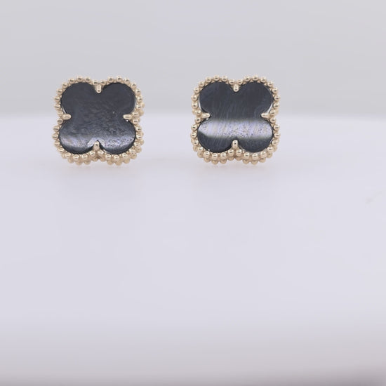 🌸 4-Leaf Clover Earrings | 18KT Yellow Gold & Black Onyx