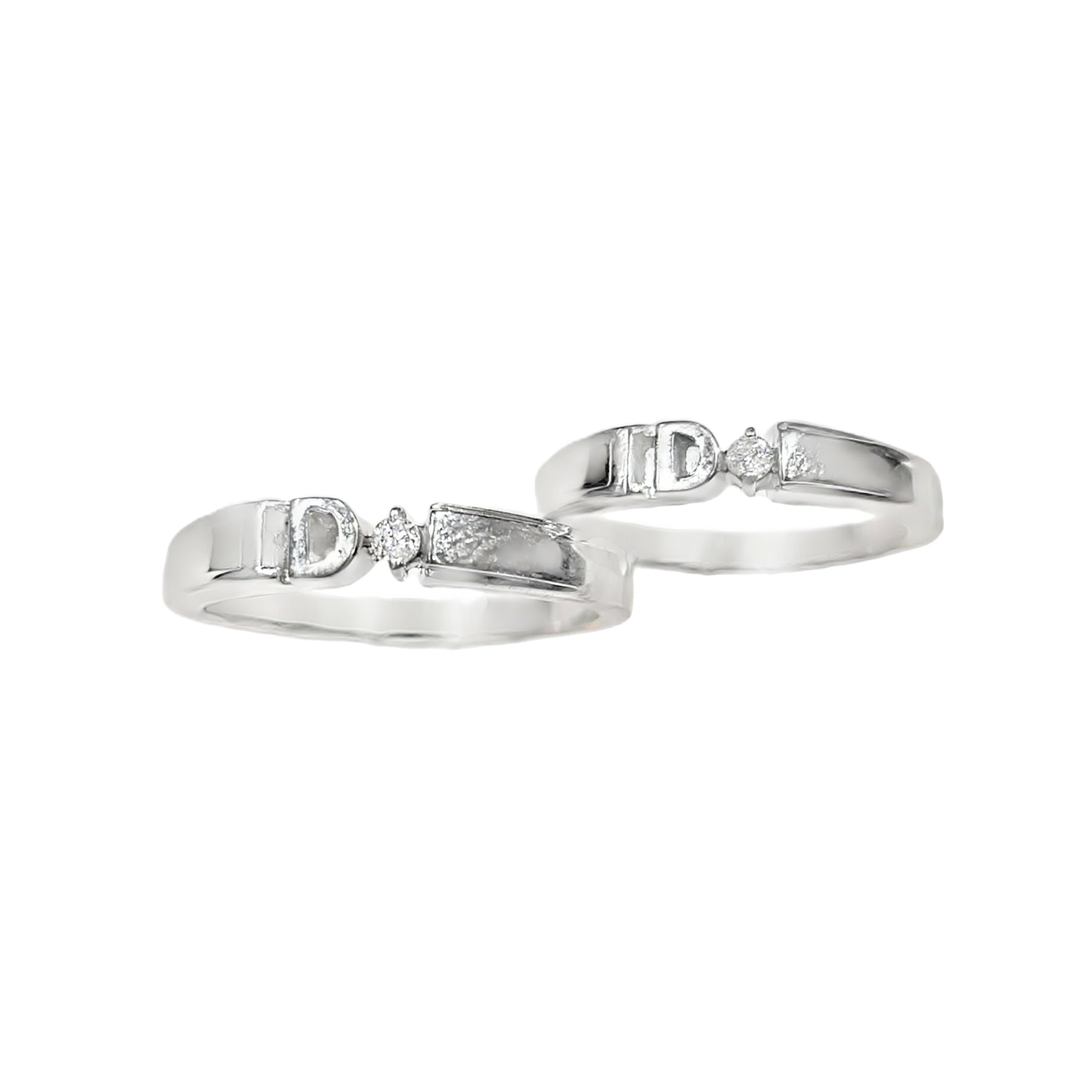 Each ring features a polished band with the iconic I-DO motif and a combined 0.10ctw of sparkling diamonds — the perfect symbol of unity, love, and commitment.