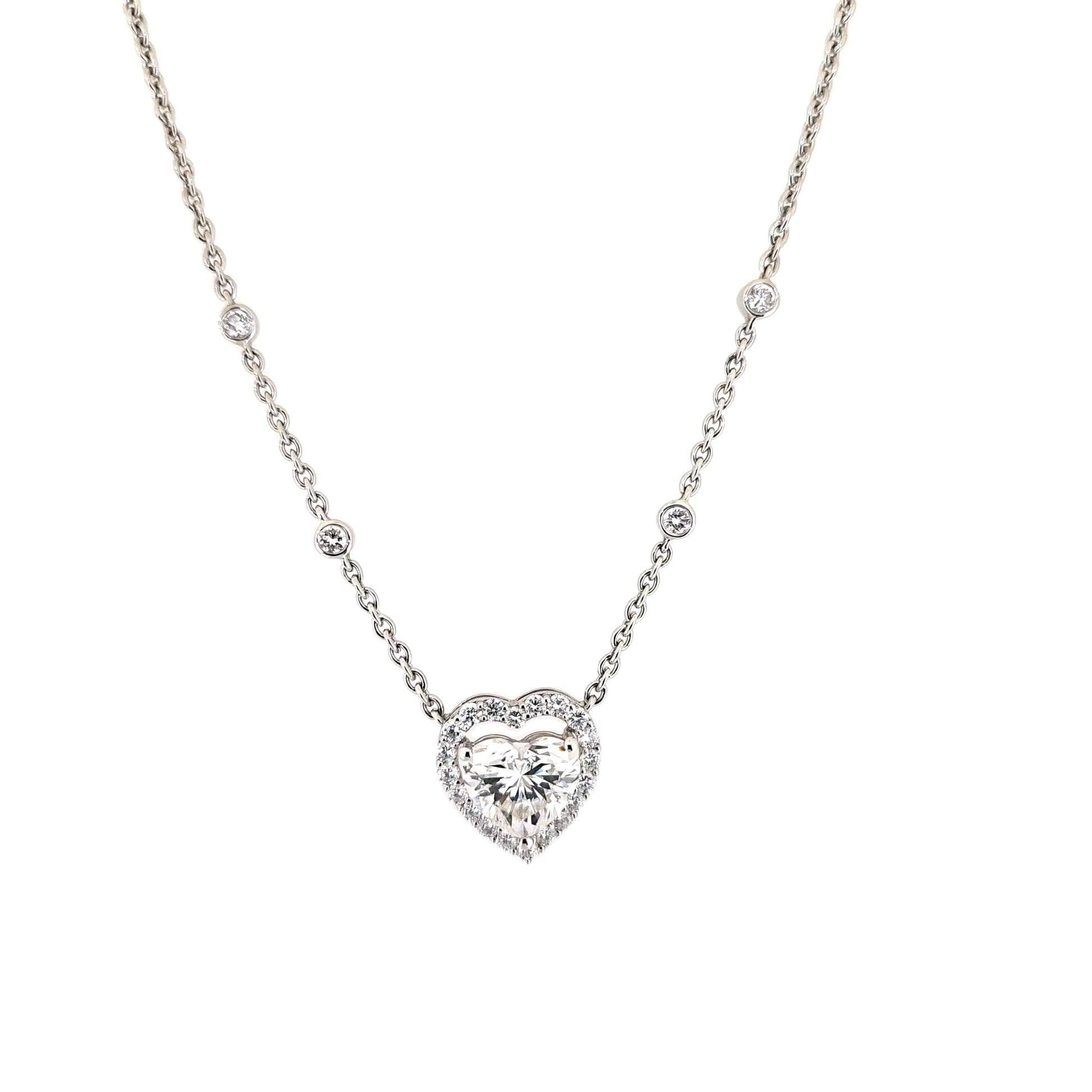 IGI Certified 3.45ctw Heart Shape Diamond Halo Necklace Pendant