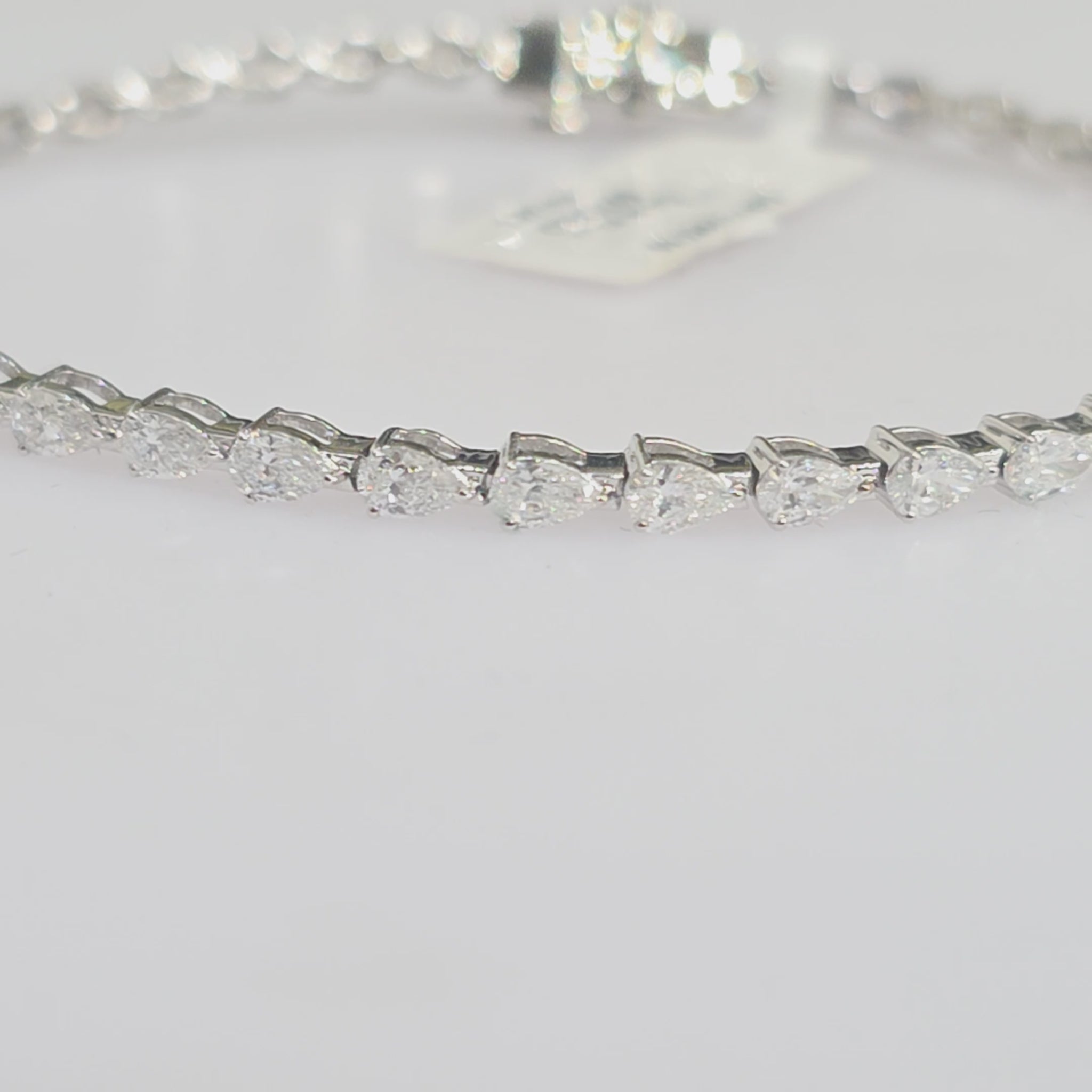 14KT White Gold Pear Shape Diamond Tennis Bracelet – 3.87 CT