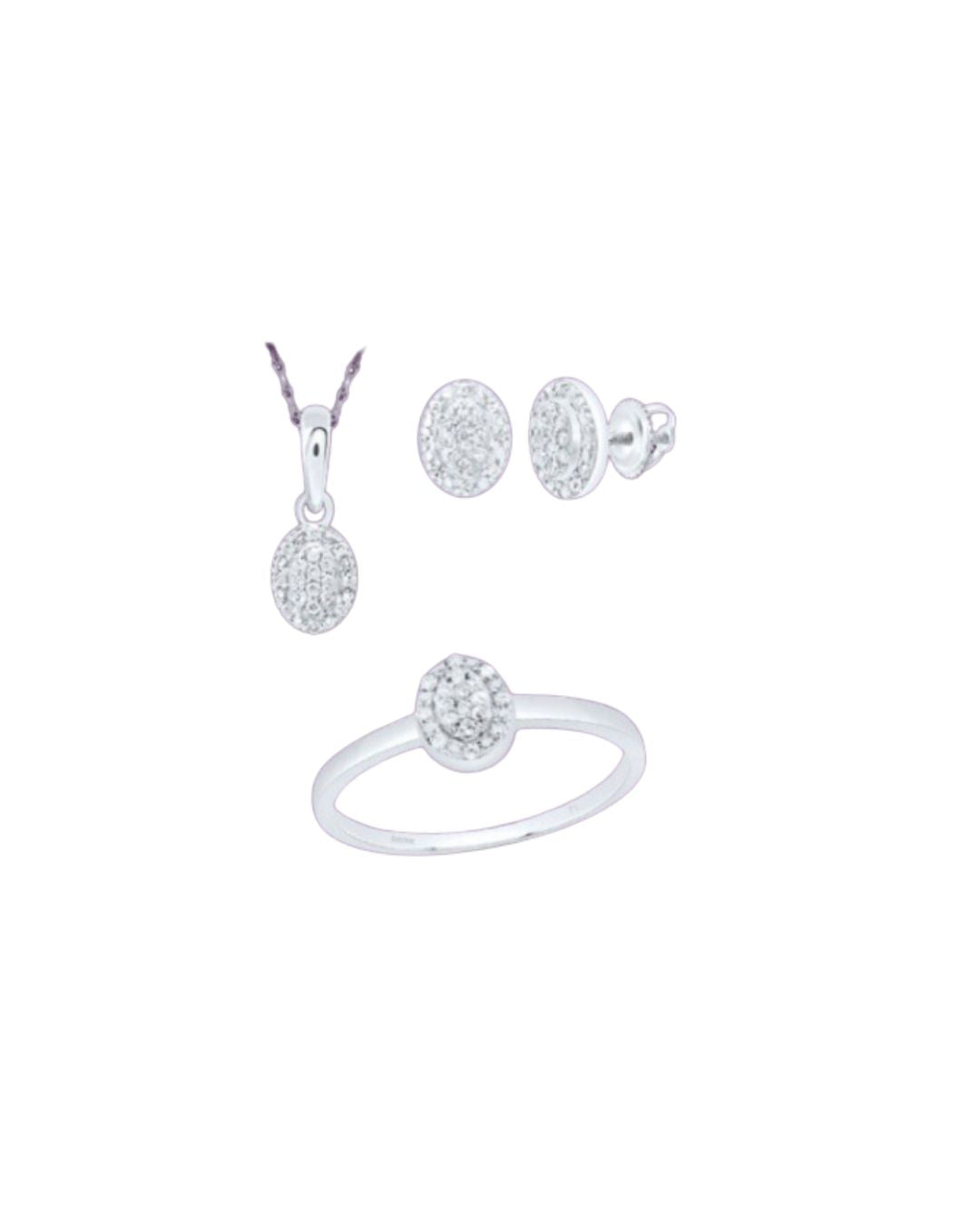 Oval Design 3 Piece Silver + Diamond Set