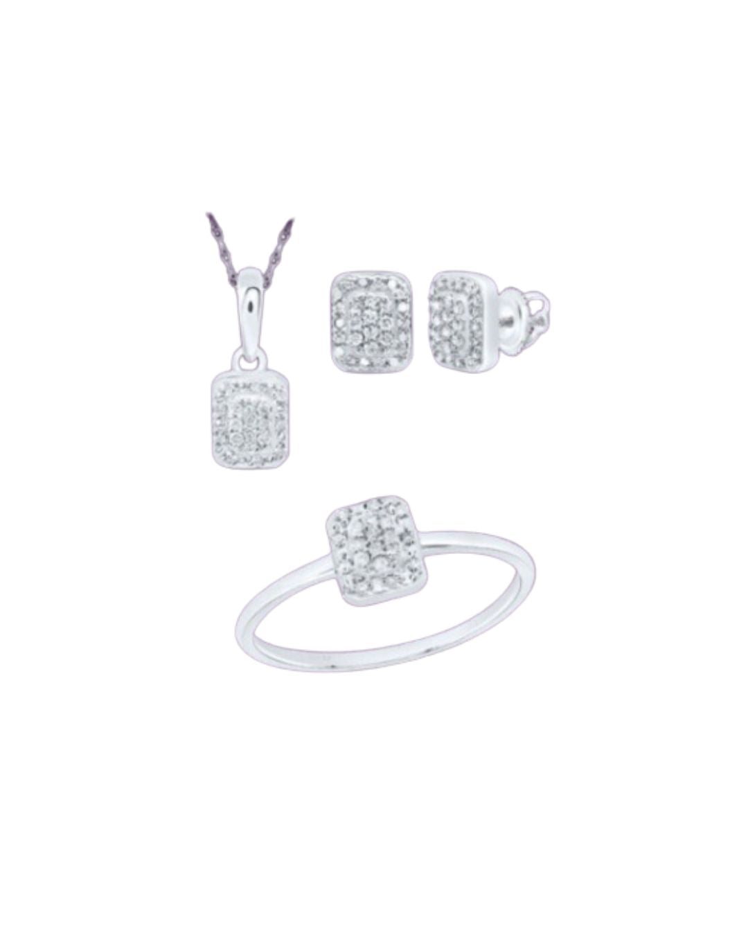 Sterling Silver 3 Piece Diamond Set. Square Design